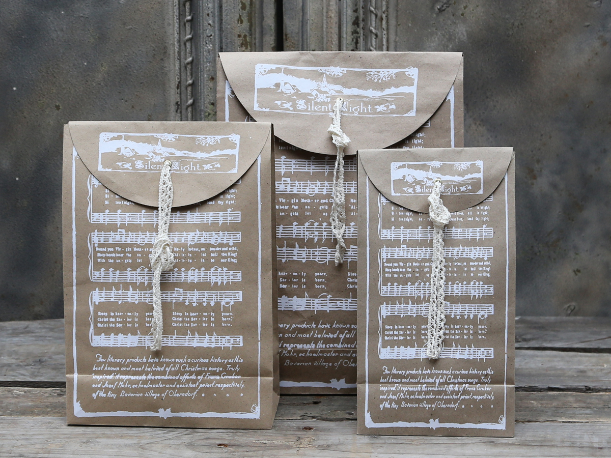 Vianočná dekoračná papierová taška v prírodnej farbe s potlačou vianočnej melódie.