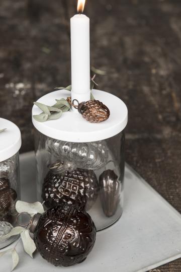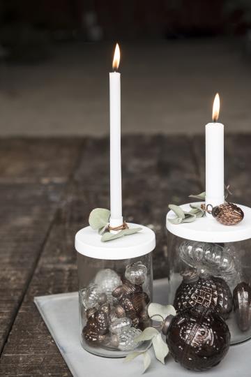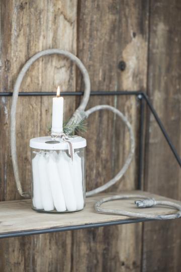 Sklenený svietnik s bielym vekom