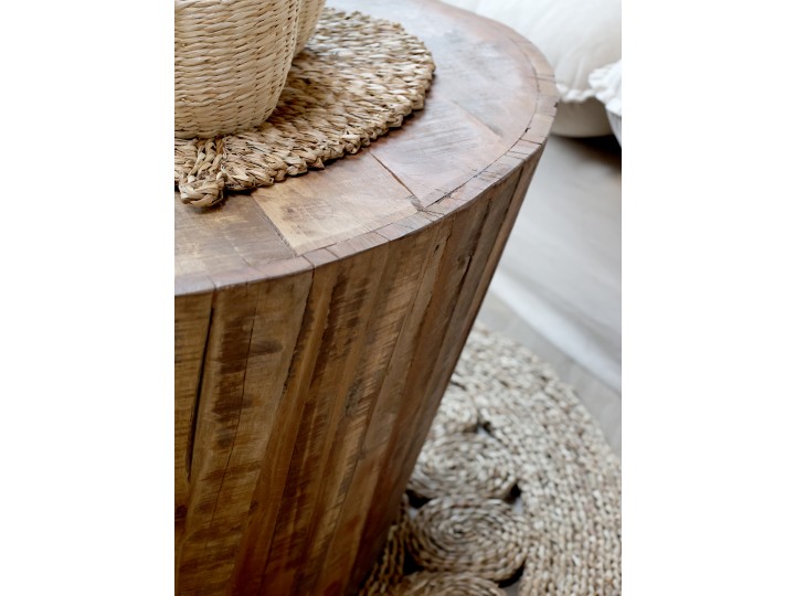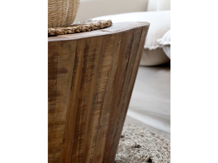 Moderný, minimalistický okrúhly dizajn necháva naplno vyniknúť drsnú krásu masívneho dreva.