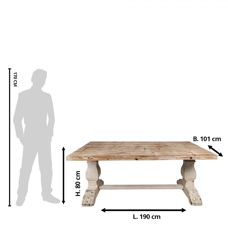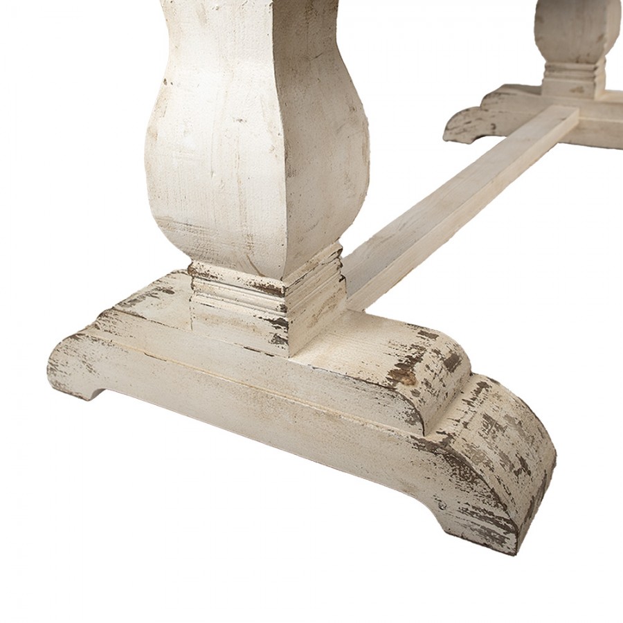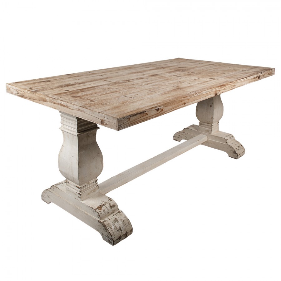 Drevený béžový stôl s hnedou doskou v štýle brocante.