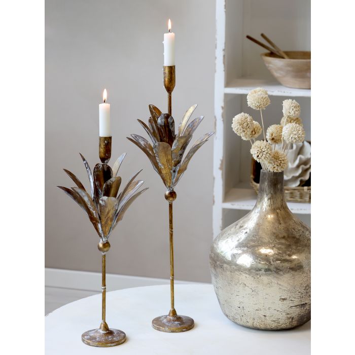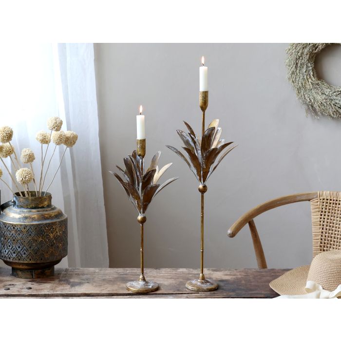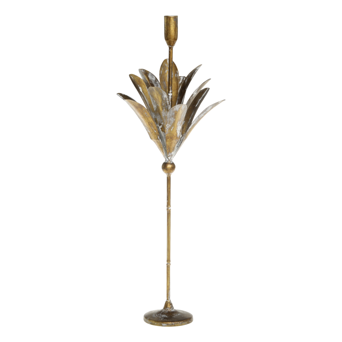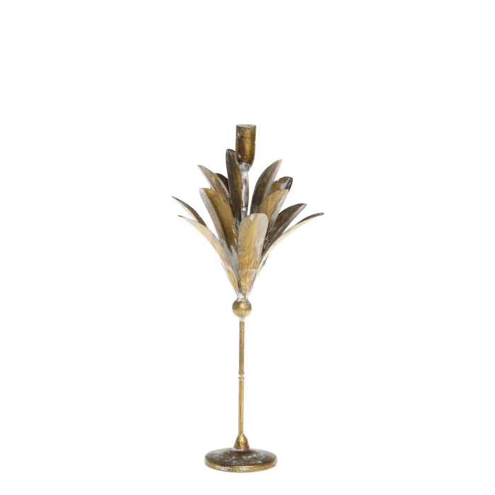 Mosadzný vysoký svietnik s lístkami