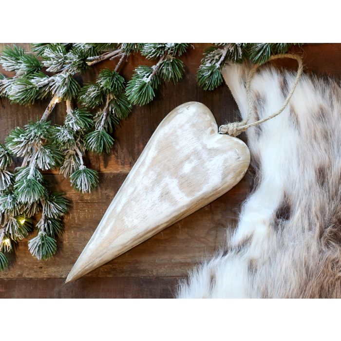 s týmto očarujúcim dreveným srdiečkom s jemnou bielou patinou.