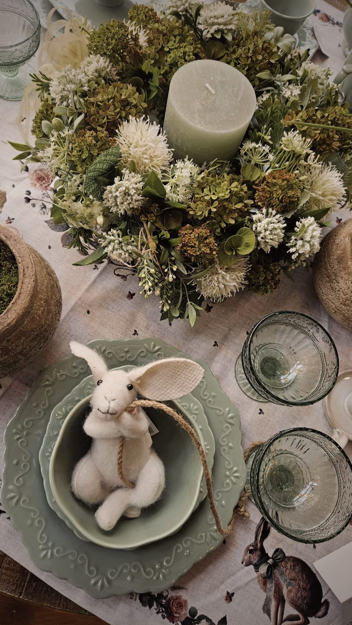Roztomilý biely zajačik na šnúrke, krásna dekorácia,