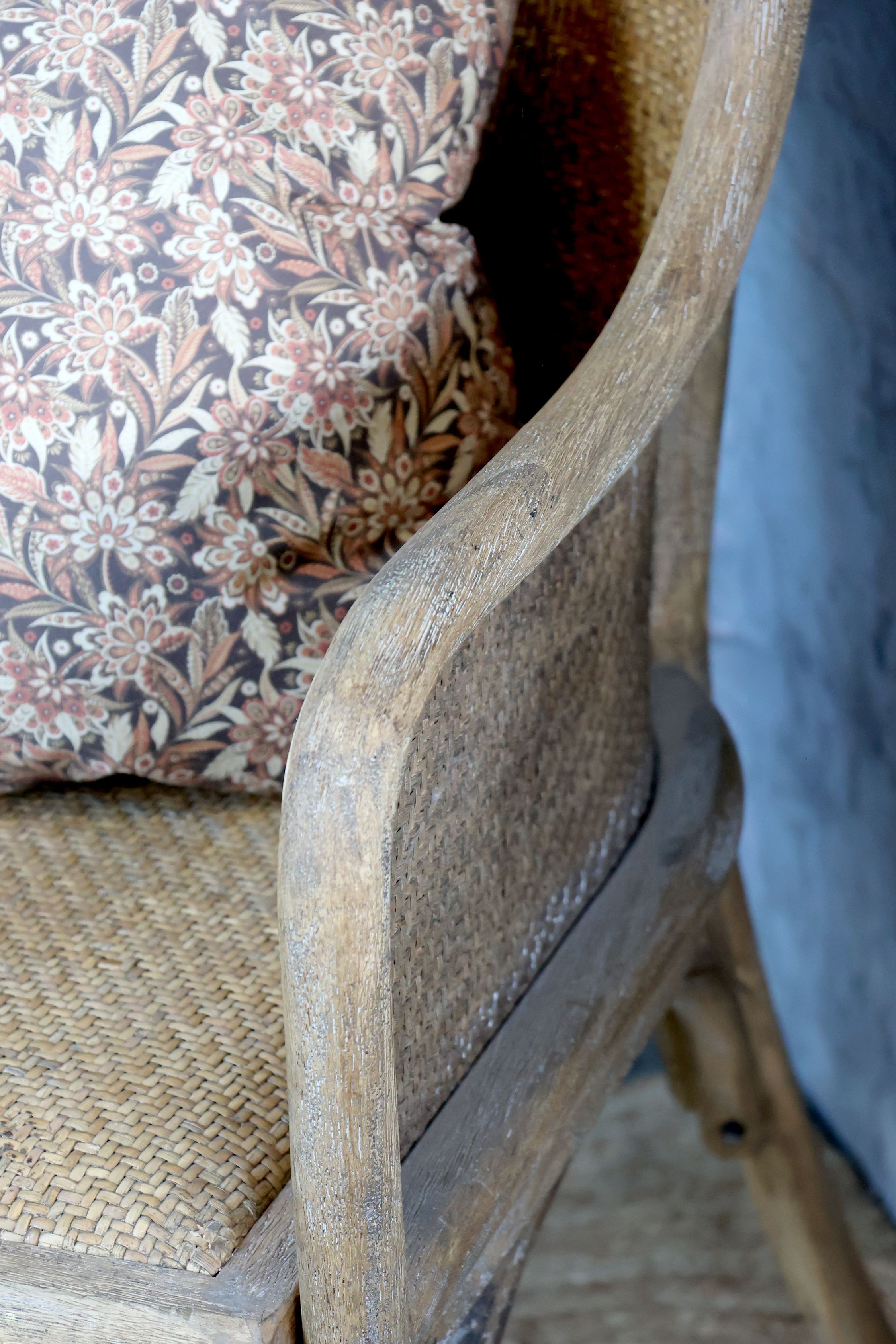 stará francúzska stolička s výpletom, v naturálnej farbe dreva