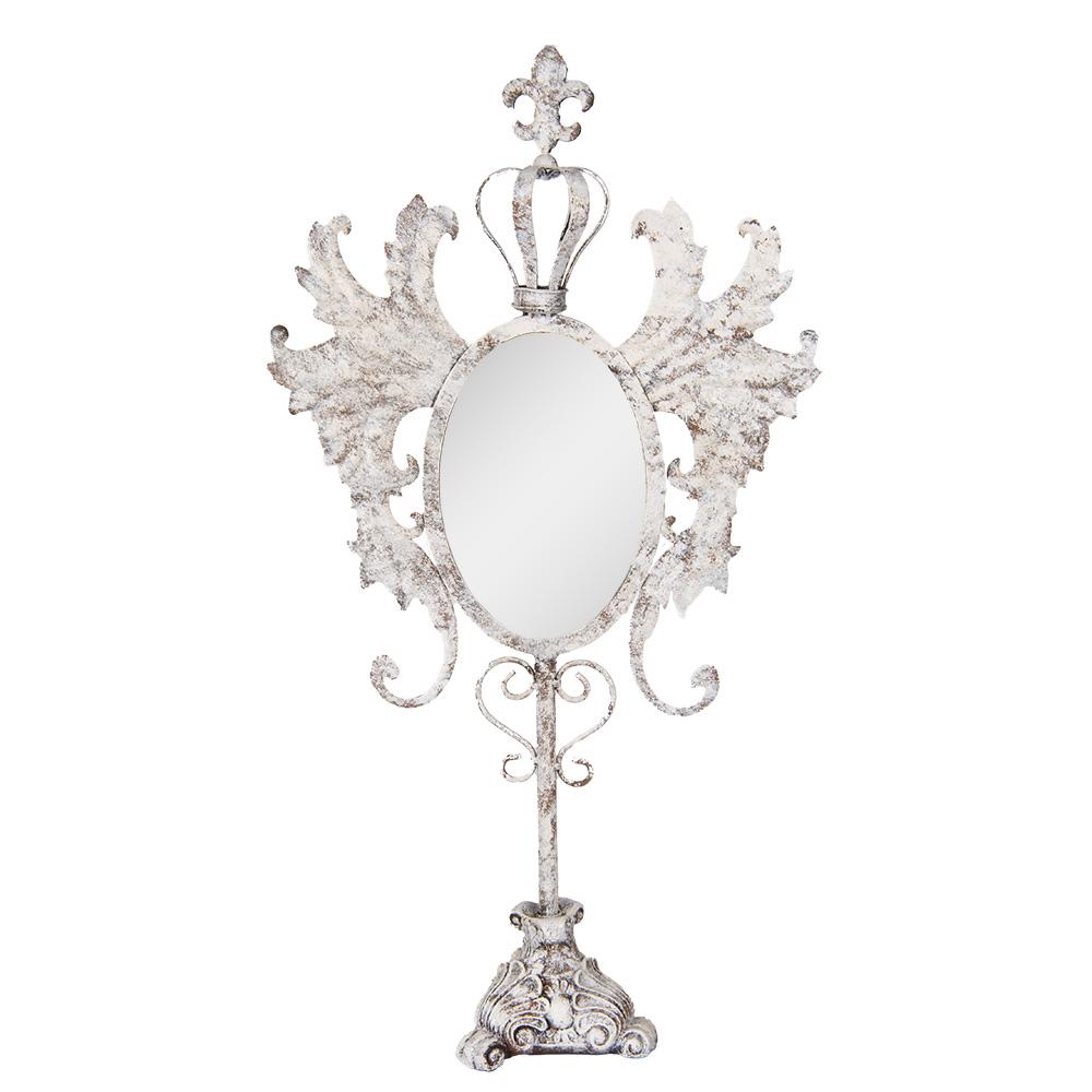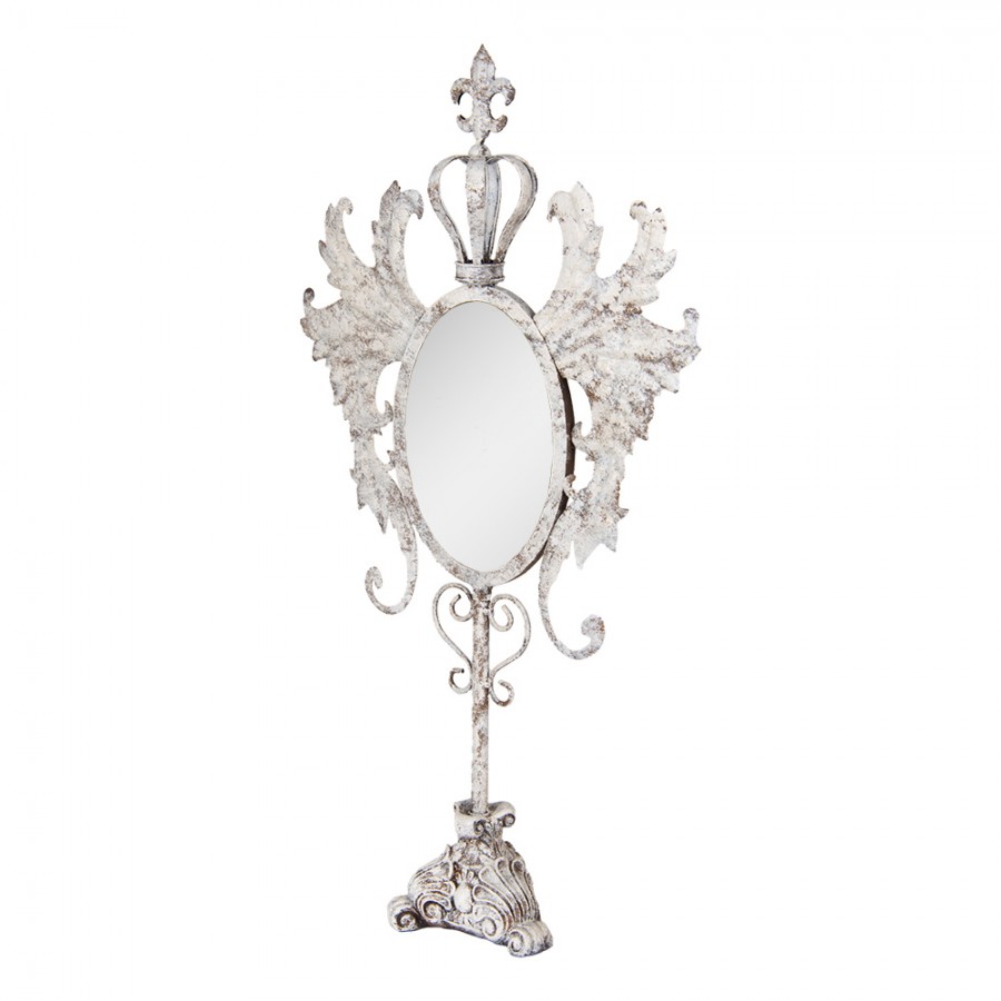 Krásne malé voľne stojace zrkadlo vyrobené z kovu s elegantným barokovým vzhľadom.