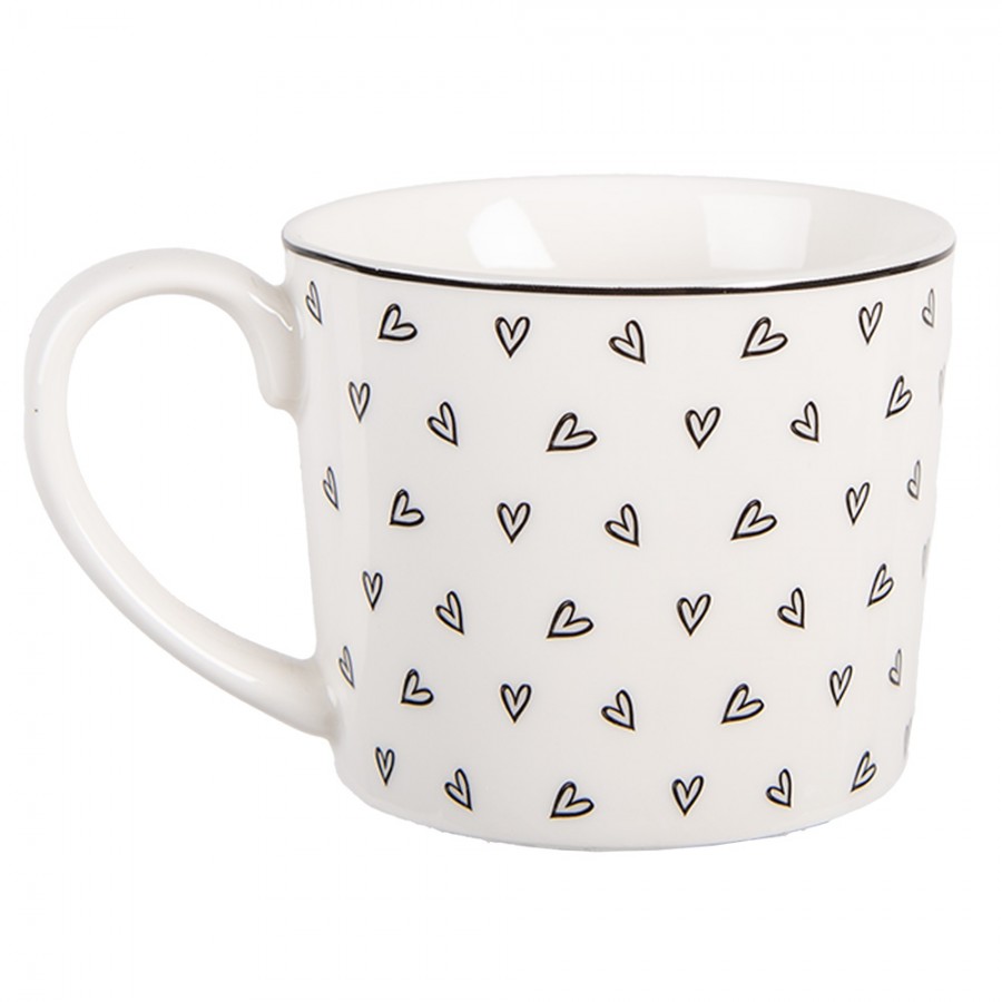 Jemný a elegantný porcelánový hrnček s čiernym srdiečkovým vzorom dodá vašim každodenným chvíľam pri káve či čaji nádych romantiky a štýlu. Ideálny na podávanie horúcich nápojov, či už ide o rannú kávu, čaj o piatej alebo večernú šálku kakaa. Tento hrnček poteší každého, kto si potrpí na detaily a krásny dizajn vo svojej kuchyni.