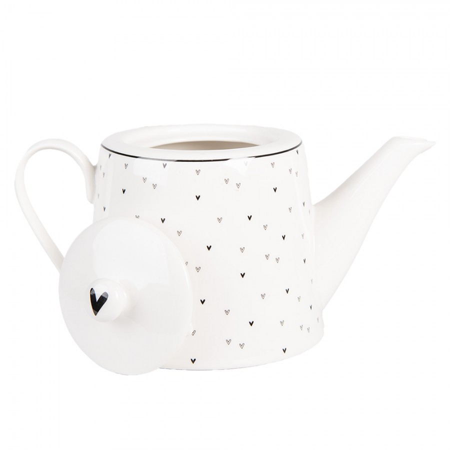 Rozkošná porcelánová kanvica s jemným vzorom srdiečok poteší každého milovníka romantického a útulného štýlu.