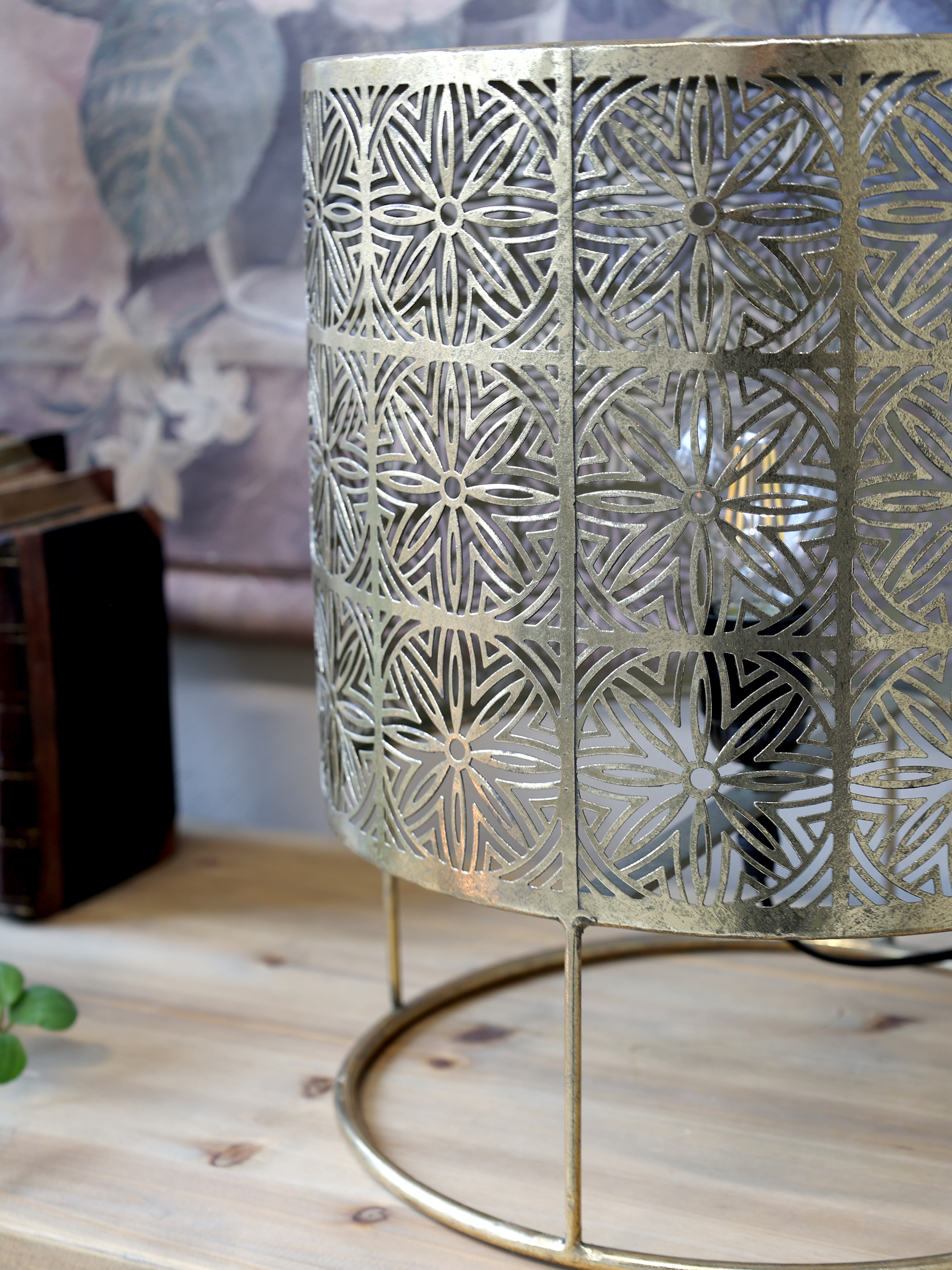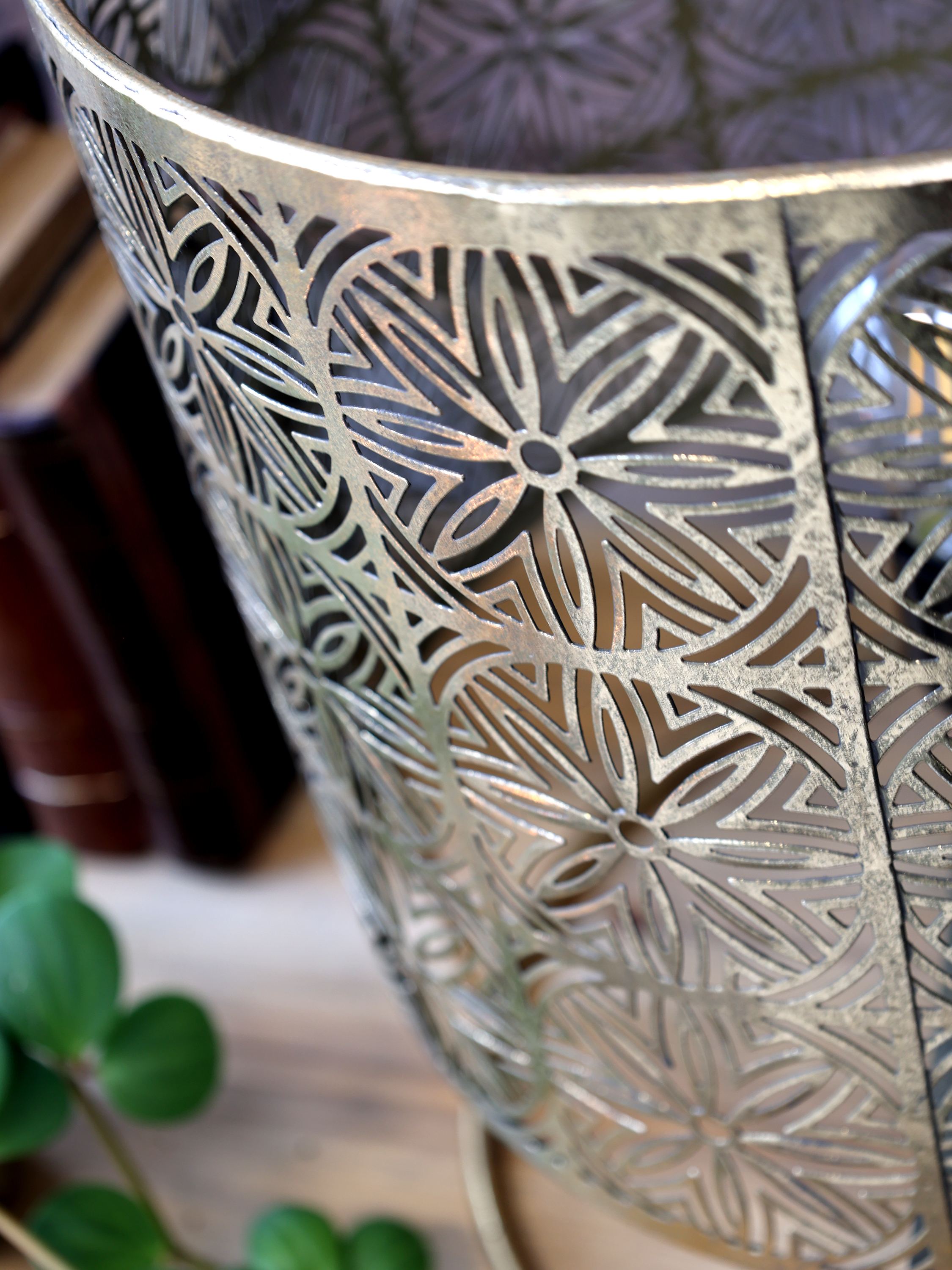 Stolná lampa s dekoratívnym vzorom – antique brass, výška 36 cm