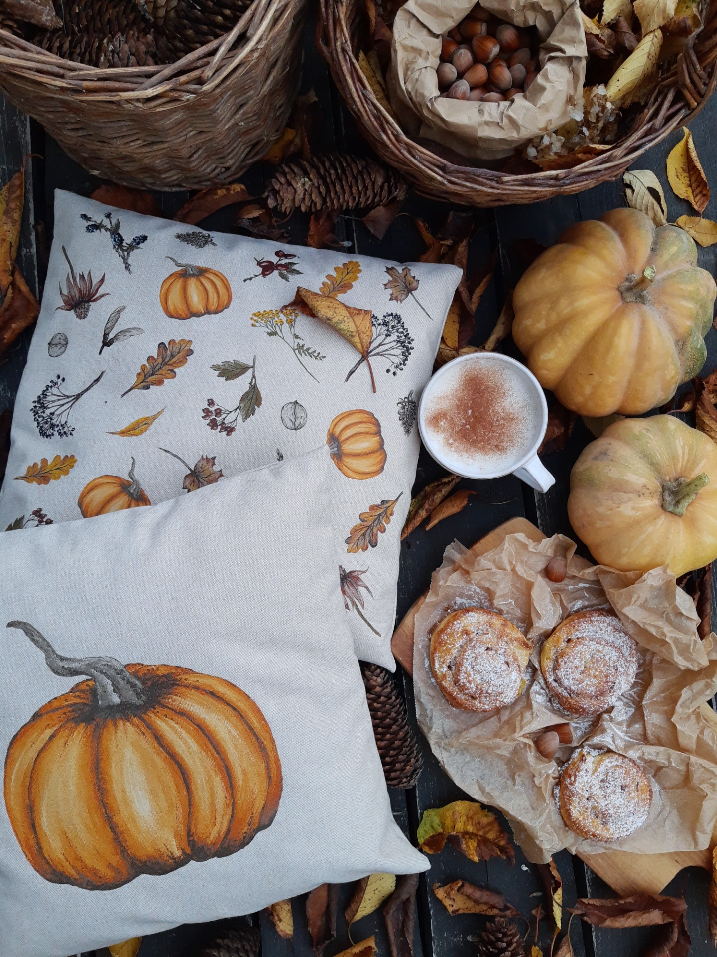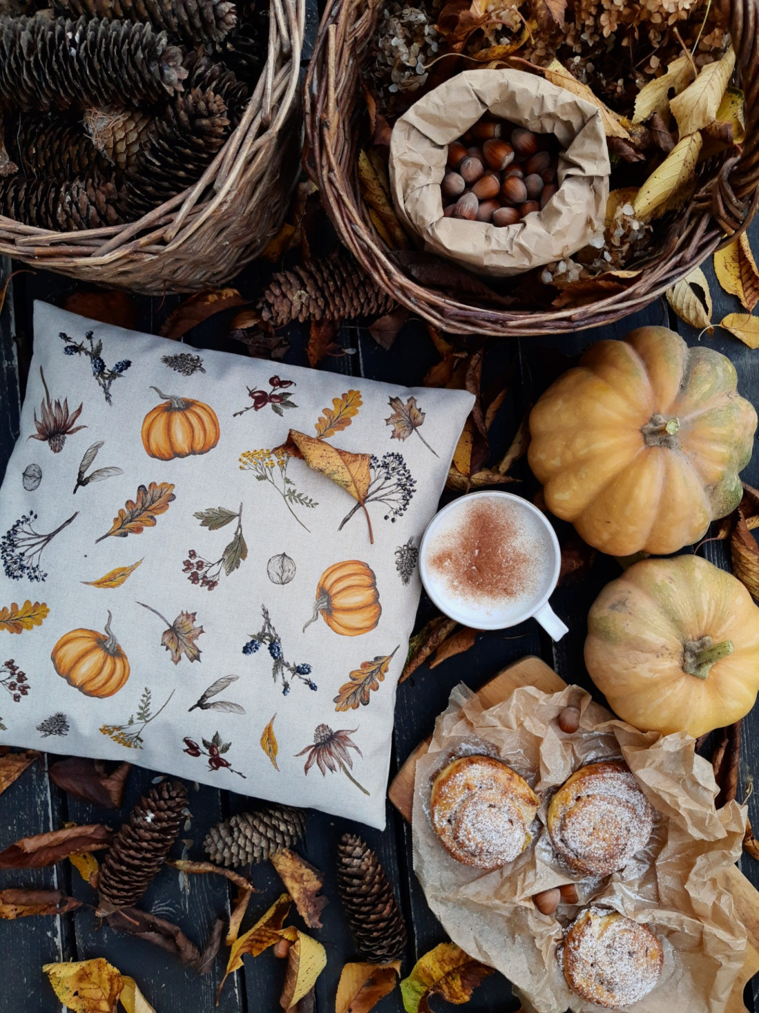 Originálny vidiecky vankúš s motívom tekvičiek , ktorý zútulní každý interiér.