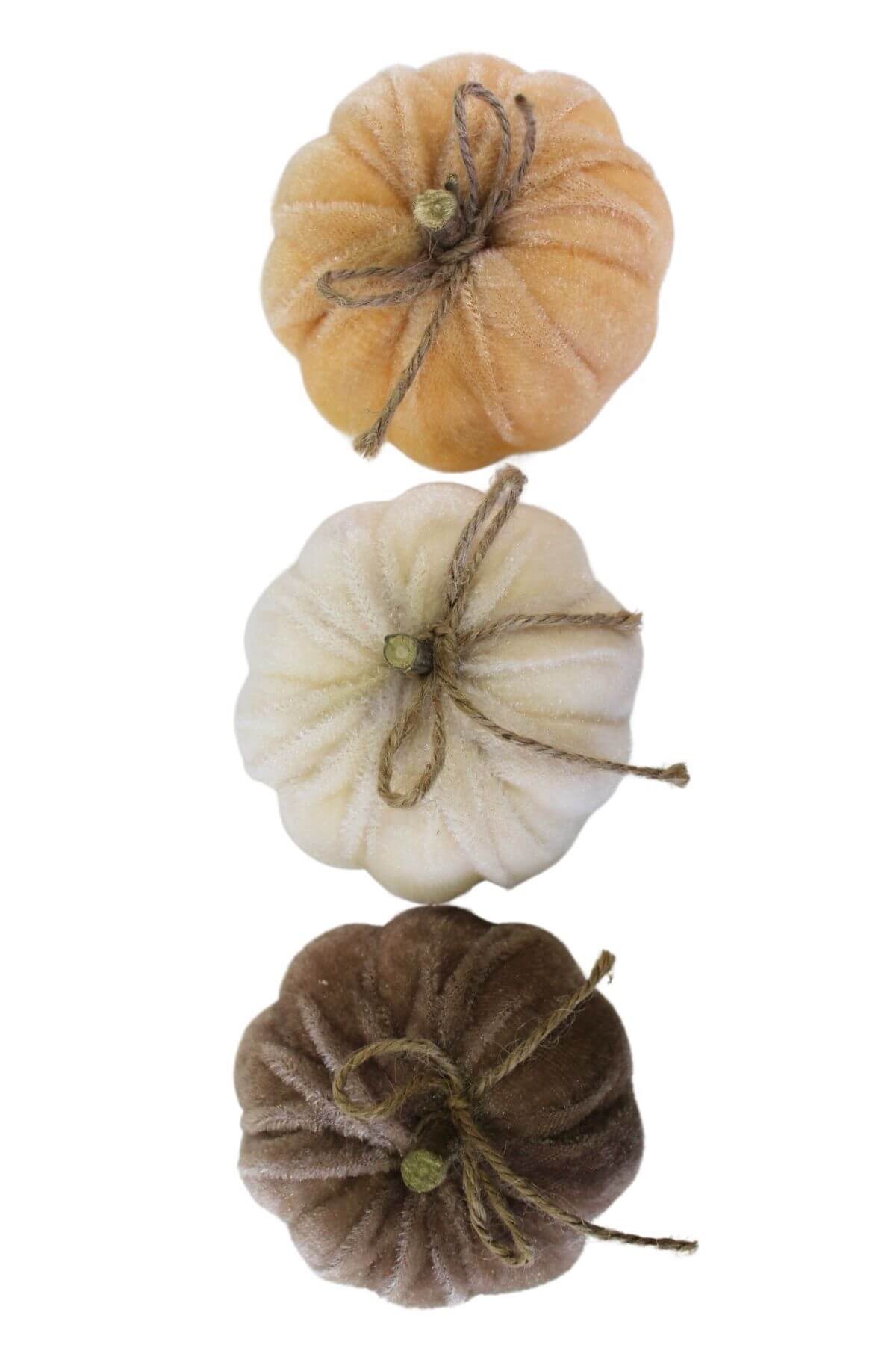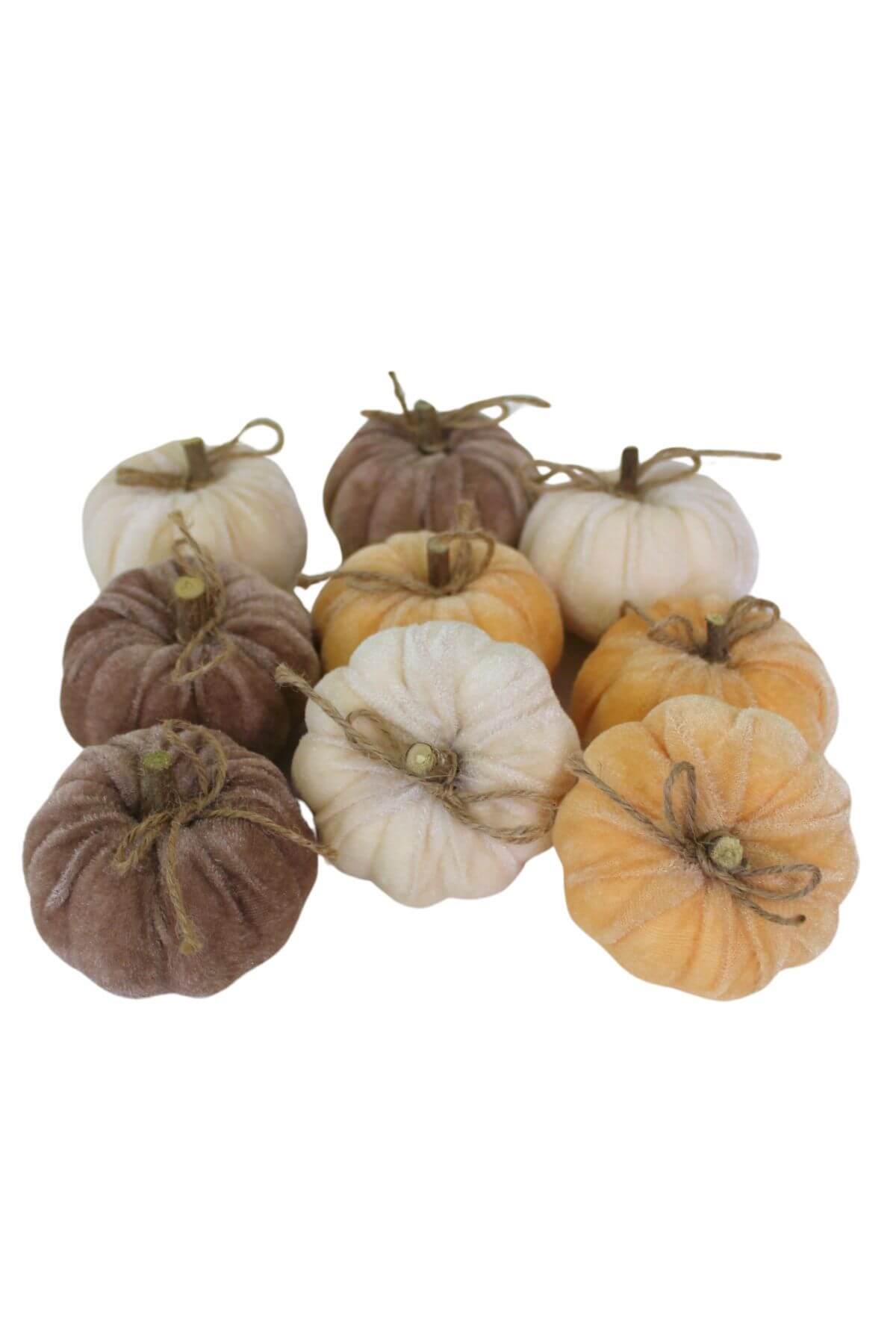 Zamatové krémovo-hnedé dekoračné tekvičky 9ks 8cm