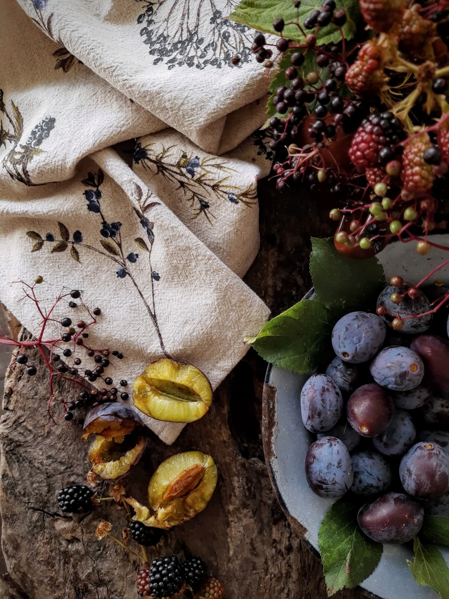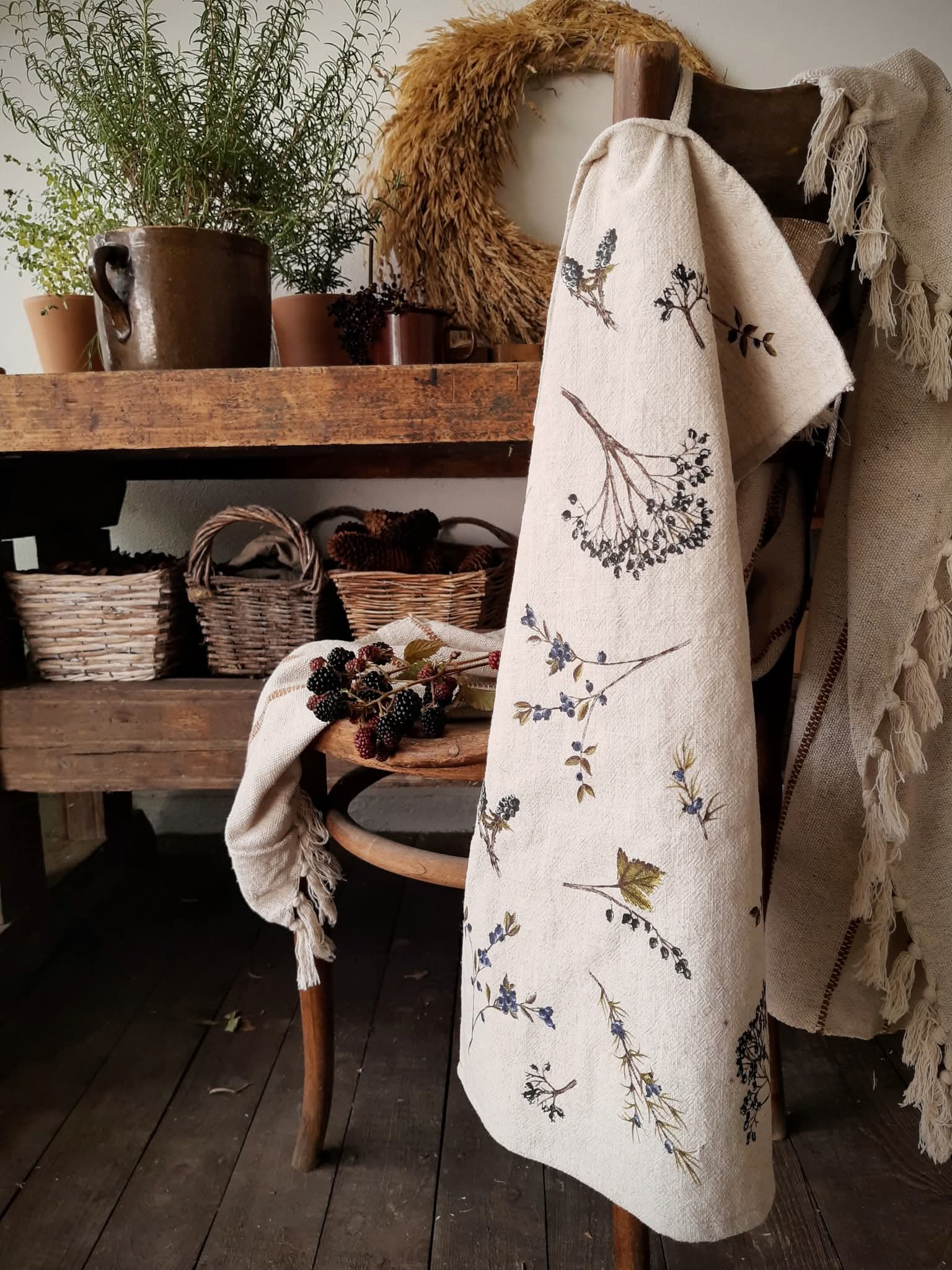 utierka s kvetmi a bobuľami
