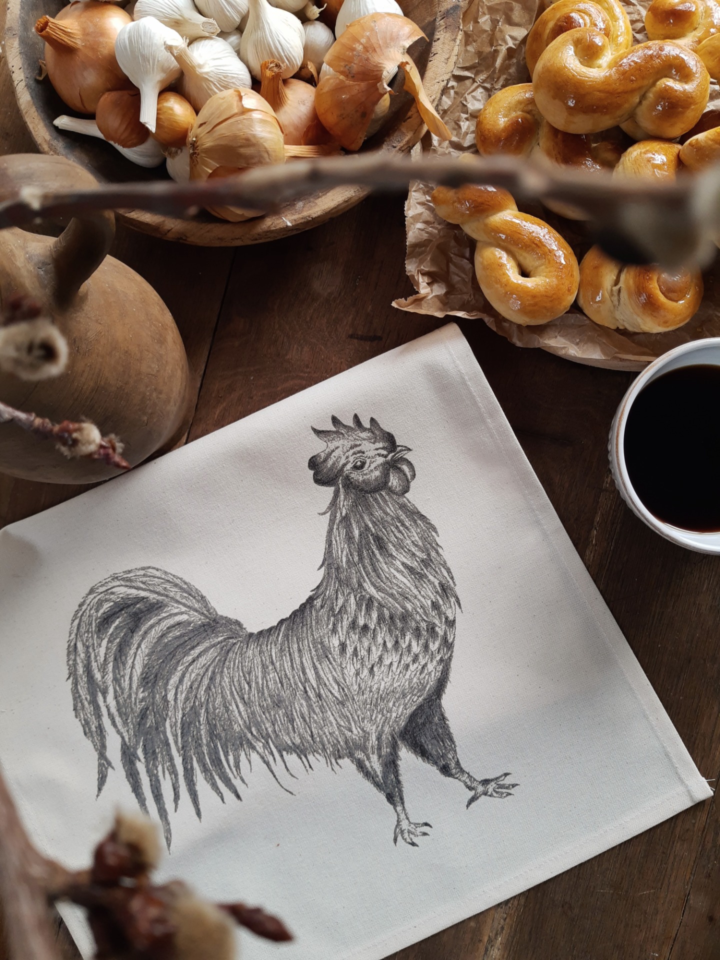 Ľanová utierka s jesennými kvetmi