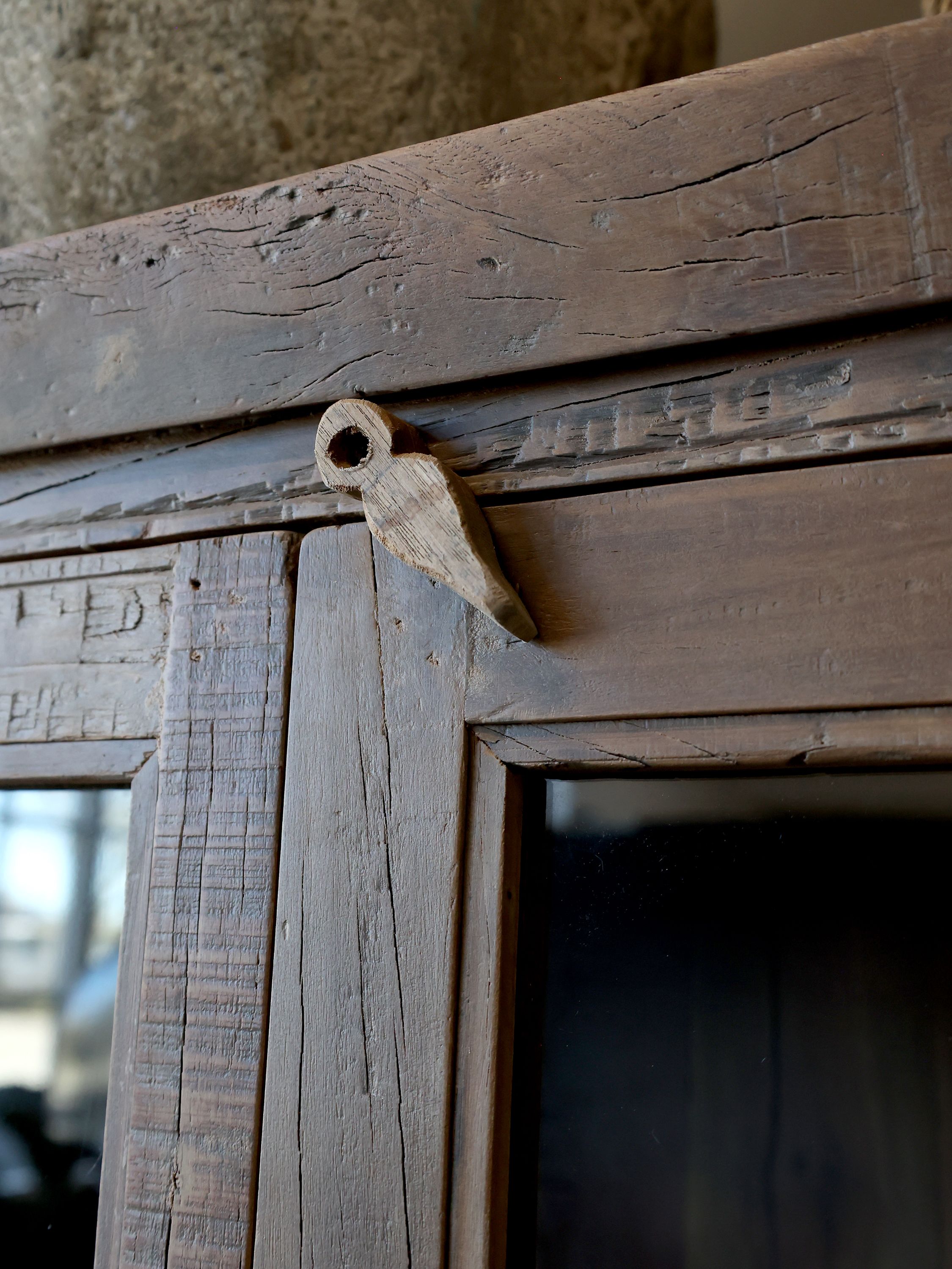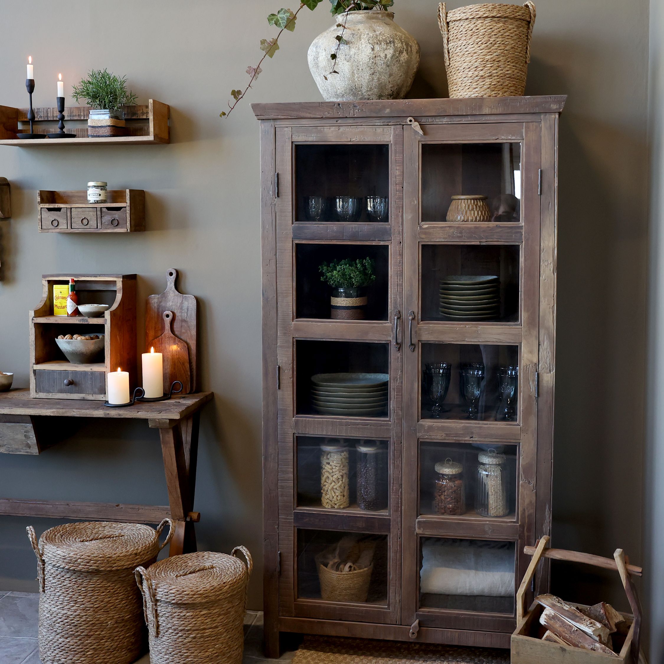 Grimaud presklený regál– Prírodný Šarm z Recyklovaného Dreva