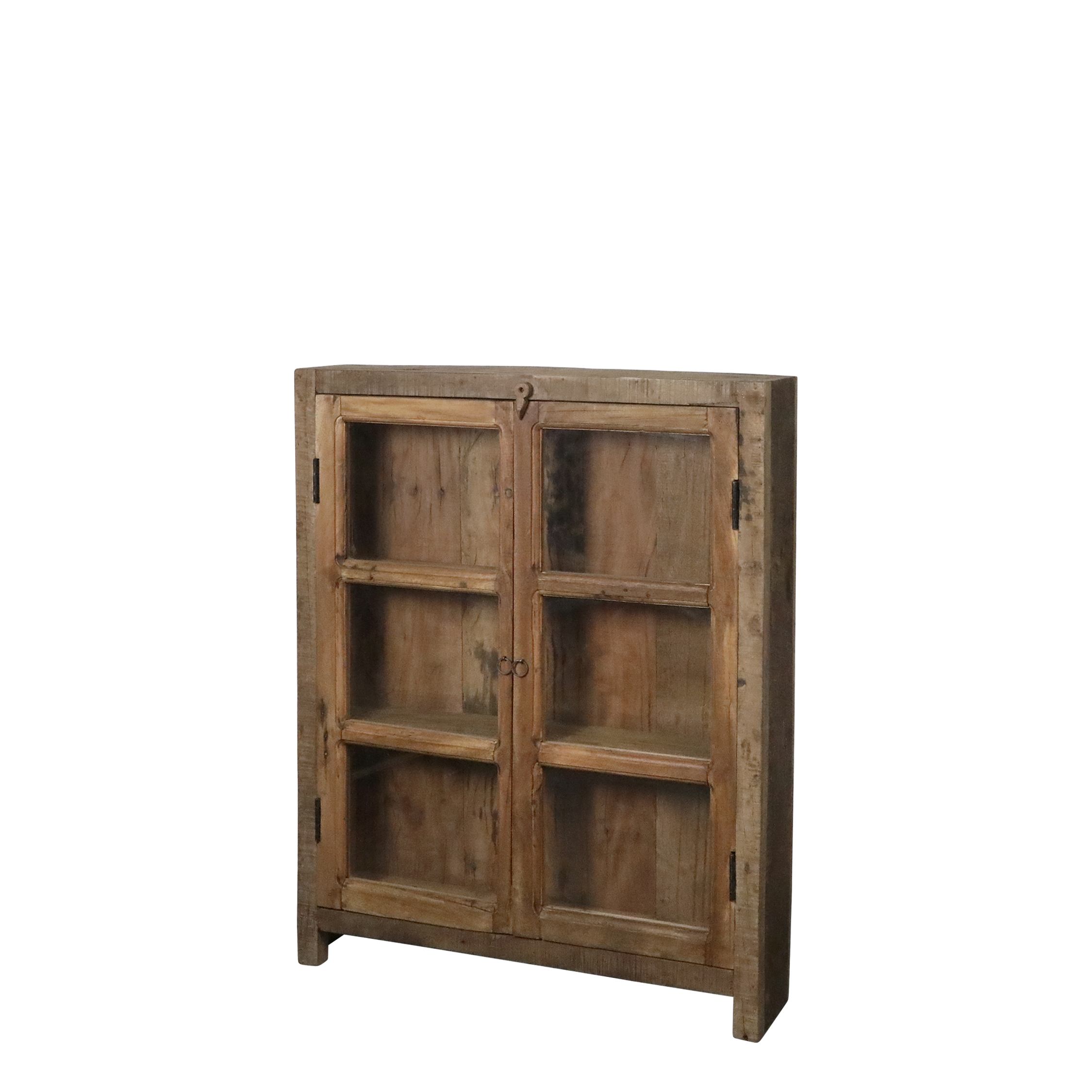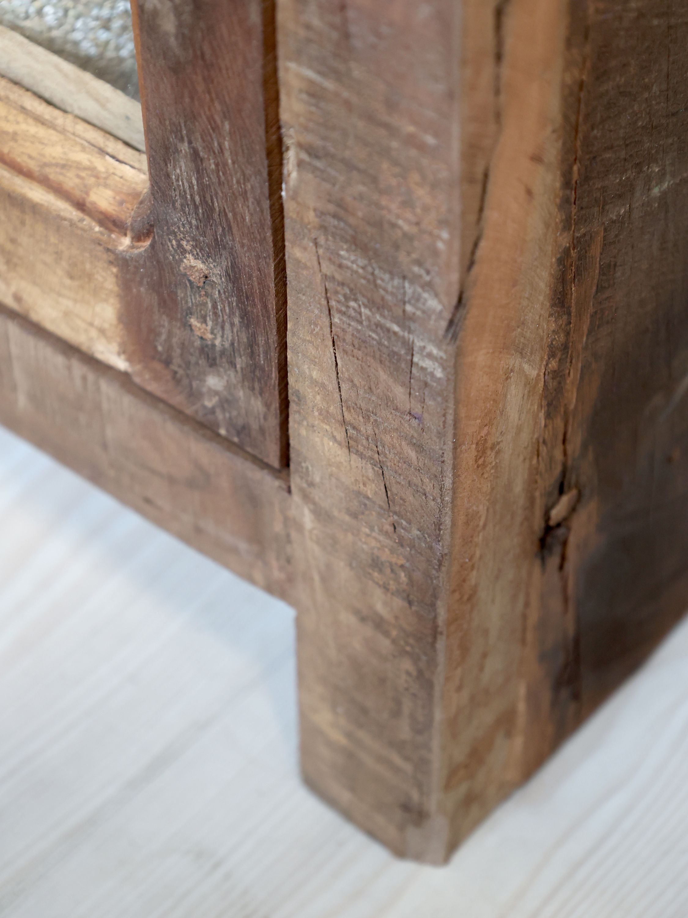Vitrína je vyrobená z recyklovaného dreva, ktoré jej dodáva jedinečný,