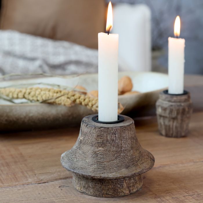 Tento pôvabný svietnik z prírodného mangového dreva a železa v sebe spája rustikálny šarm a nadčasovú eleganciu.