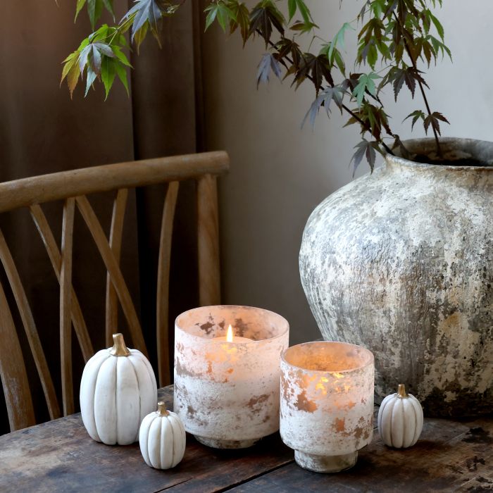 Svietnik z mliečneho skla s bielou patinou