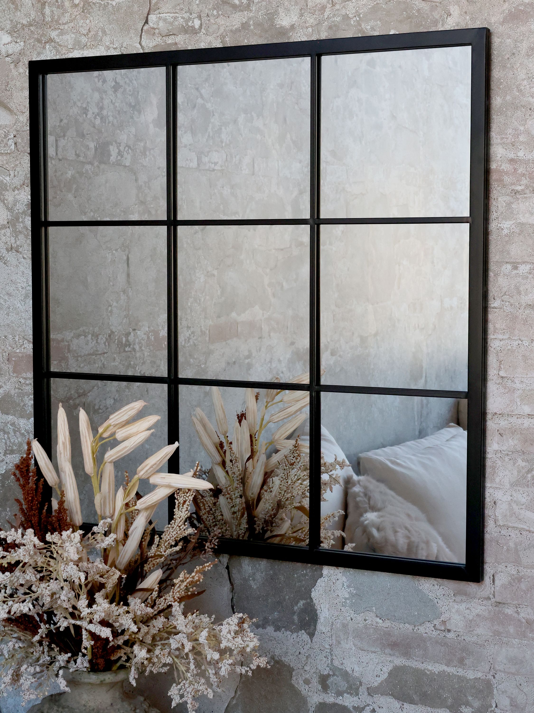 Toto továrenské zrkadlo z kolekcie Factory od Chic Antique spája industriálny šarm s elegantnou jednoduchosťou.