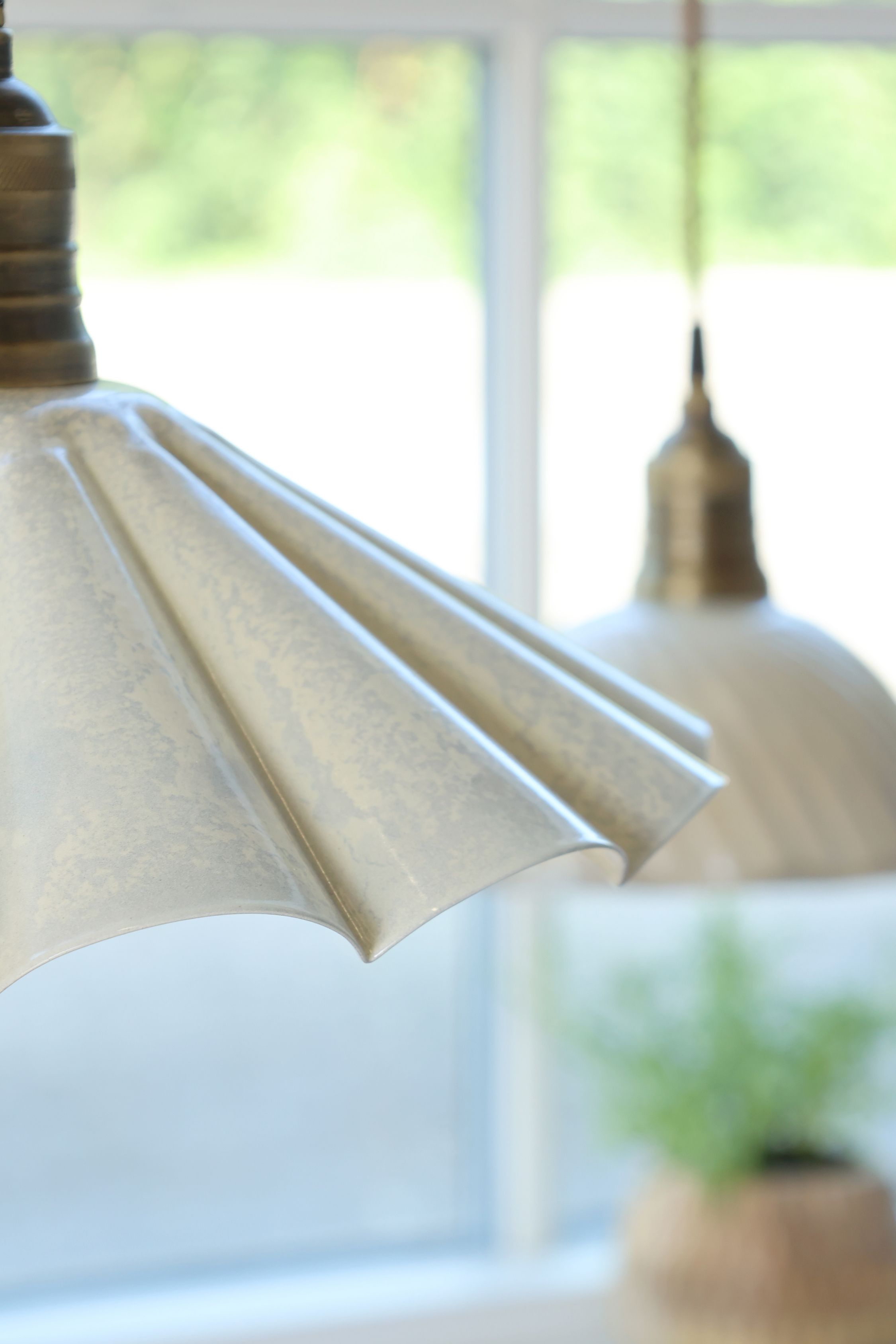 Lampa Lunel v smaltovanej krémovej farbe je nadčasový kúsok, ktorý v sebe spája jemnú eleganciu,