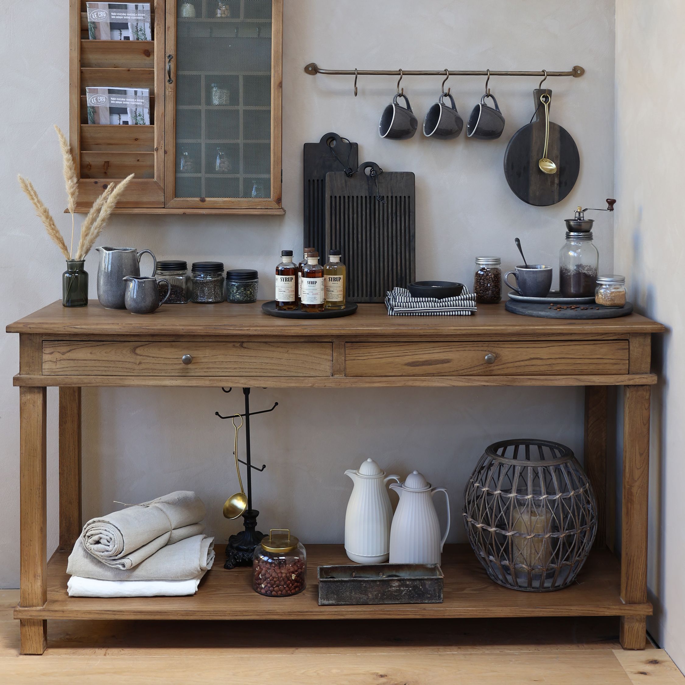 Servisný stôl Marseille od Chic Antique v prírodnej povrchovej úprave kombinuje estetiku a funkčnosť v elegantnom nábytku,
