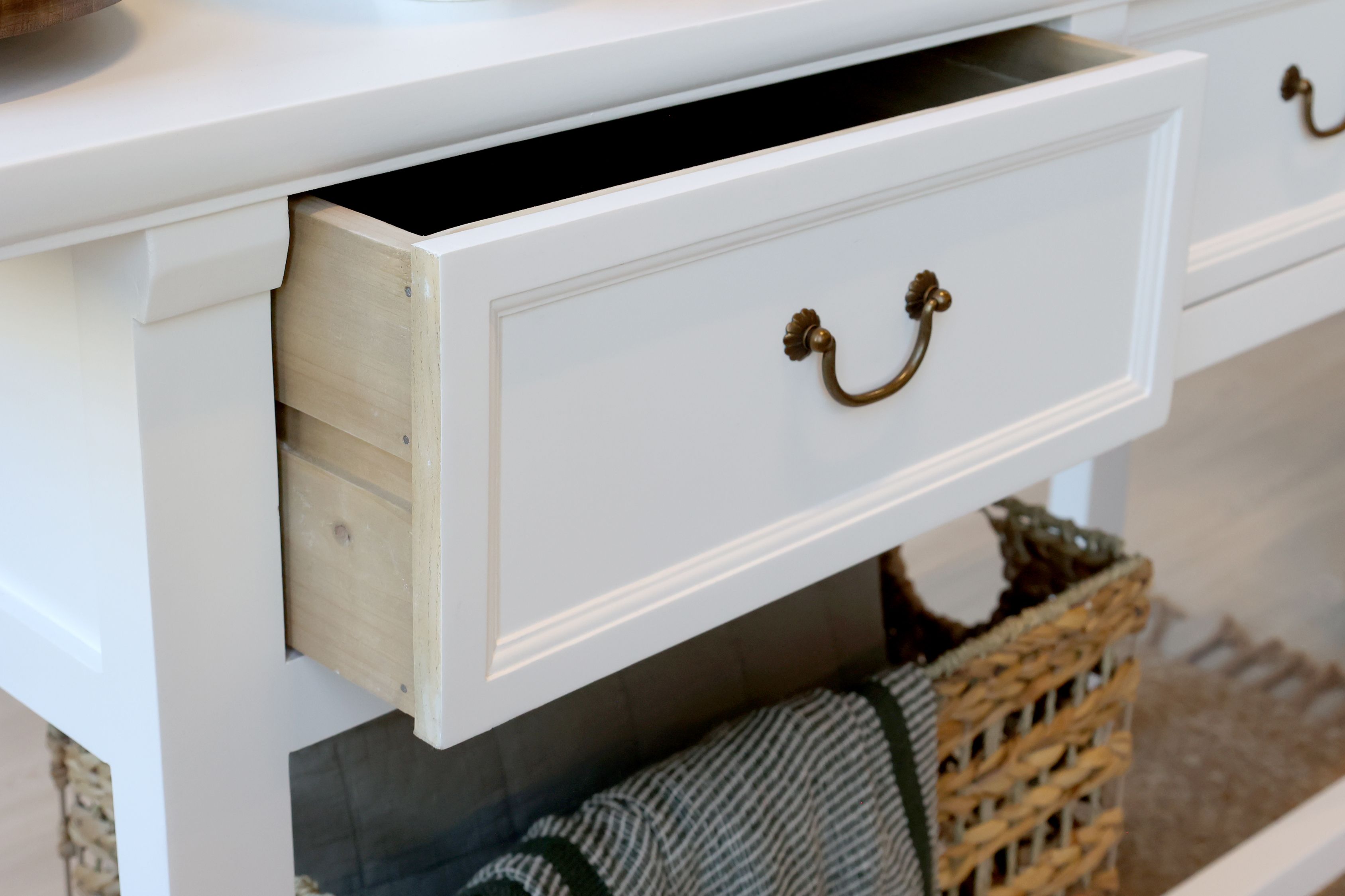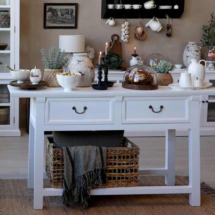 Servisný stôl Marseille od Chic Antique v bielej povrchovej úprave kombinuje estetiku a funkčnosť v elegantnom nábytku,