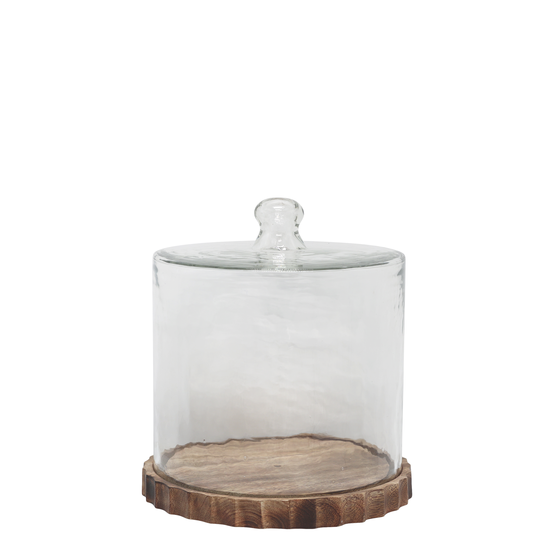 Sklenená kupola na podnose z mangového dreva – H25 cm