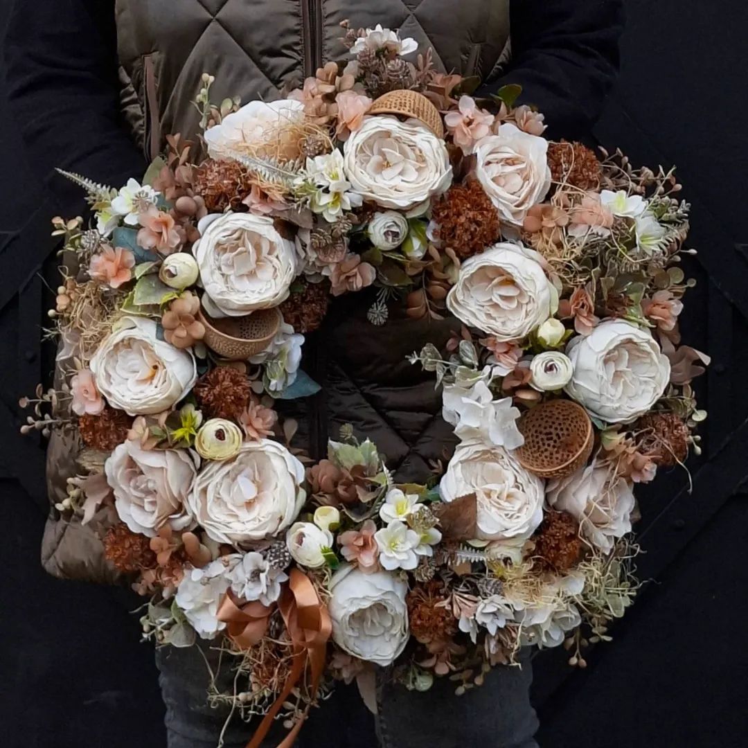 Tip pre zákazníkov: Veniec v týchto farbách je ideálnym celoročným doplnkom, ktorý krásne ladí s dreveným nábytkom a moderným škandinávskym štýlom.