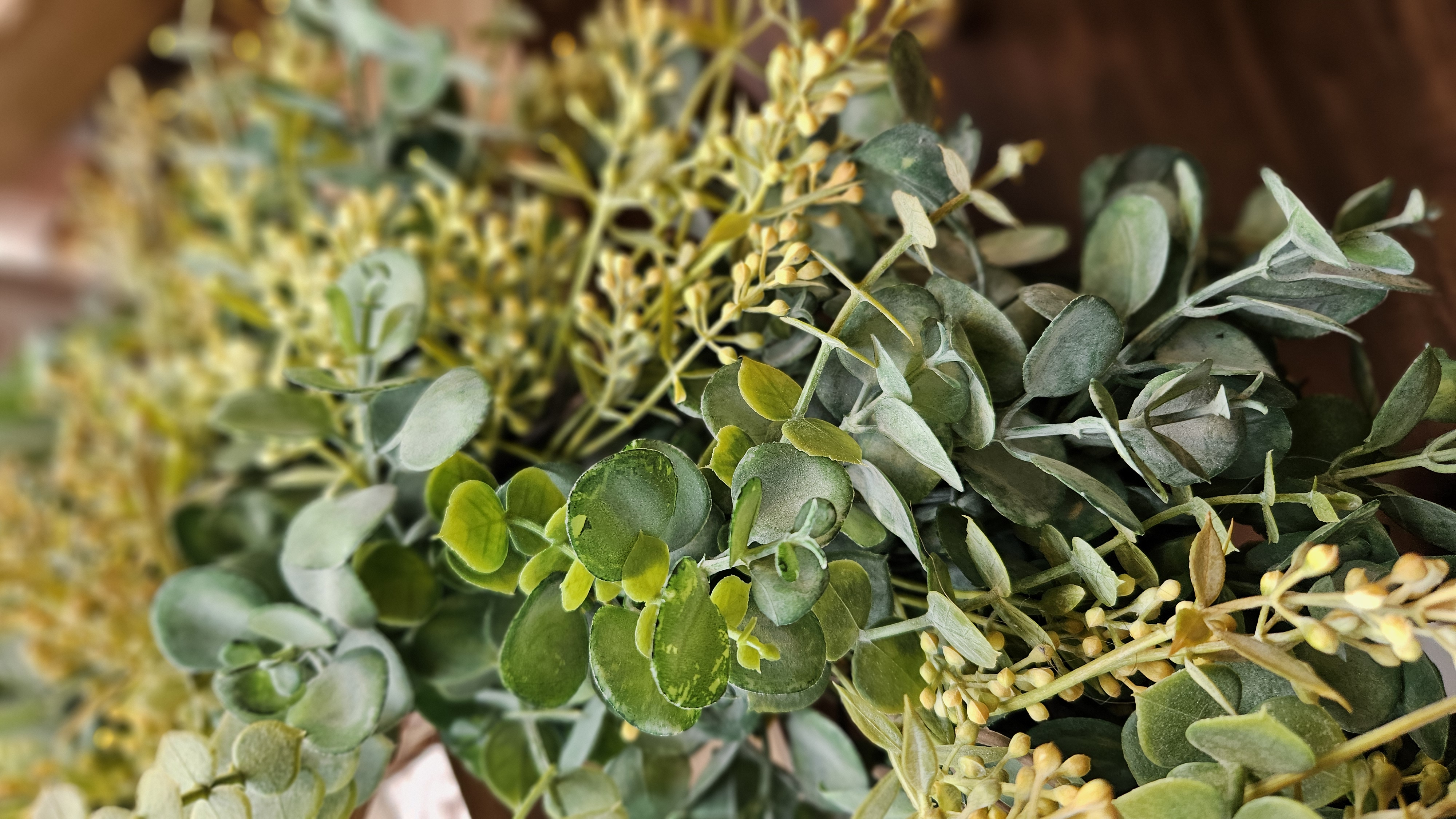 Realistický vzhľad: Použili sme prémiové umelé kvety, ktoré sú na pohľad aj na dotyk takmer na nerozoznanie od živých. Zelené rastlinky s bobuľkami s jemnými žltými kvetinkami vytvárajú dokonalý celok.