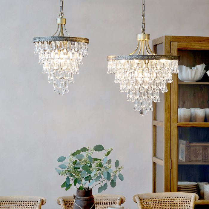 S priemerom 45 cm je tento model ideálnym riešením do spální, nad okrúhle jedálenské stoly alebo do štýlových pracovní. 6 svetelných bodov ukrytých za kaskádou sklenených „kvapiek“ zabezpečí, že svetlo sa do miestnosti rozleje jemne, bez oslnenia, no s maximálnym estetickým zážitkom.