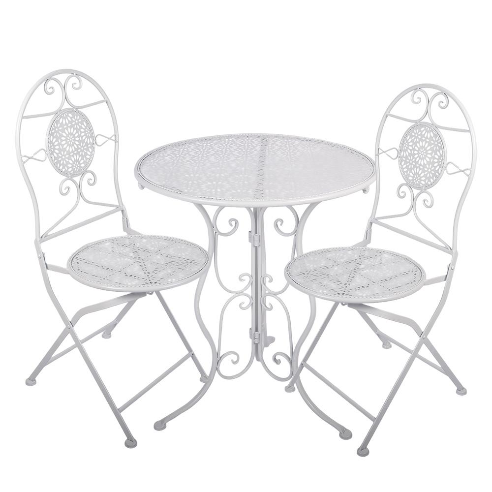 Kovový bistro set Clayre & Eef – Biely (Stôl a 2 stoličky)