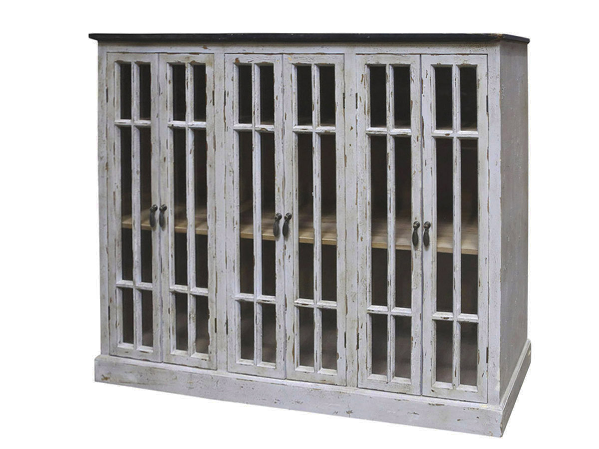 Francúzska patinovaná schabby chic vitrína so 6-timi presklenými dvierkami